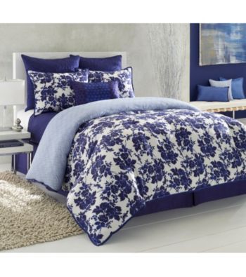 Bedding. Exclusively ours! A mixture of contemporary patterns make for a beautiful medley in the Mykonos bedding collection. You won't be able to help but feel at home with the ultra chic Casa by Victor Alfaro Mykonos bedding collection. Make your master suite a luxurious haven with the bedding's fabulous blue hues, which easily offer your bed beauty. Classic quilting in a modern design, V-shaped stripes and large dots show modern elegance. Finish off your new bed with a coverlet and one or all four of the patterned decorative pillows. Available in Queen and King sizes ... Read more