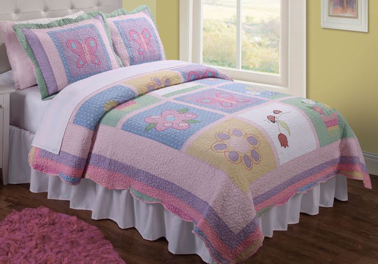 Anna's Daydream is a collection of appliqué patches for a whimsical kids quilt. Soft pastel colors and a prewashed classic soft texture will provide years of enjoyment. Set includes: One quilt, two shams (twin-size set only has one sham) Pattern: Pastel colors of appliqué and patchwork Color: Pink, soft green, light blue Style: Patchwork with appliqué Cover materials: Cotton, polyester Fill materials: Cotton Backing materials: Cotton, polyester Care instructions: Machine wash cold Twin Dimensions Quilt: 68 inches wide x 86 inches long ... Read more